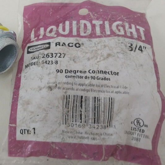 New Hubbell Raco Liquidtight 3/4" 90 Degree Connector 263727