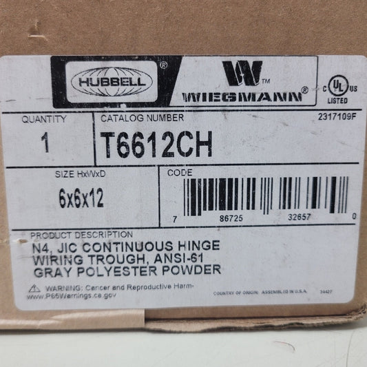 New Hubbell 6" by 6" by 12" T6612CH N4 Continuous Hinge Wiring Trough