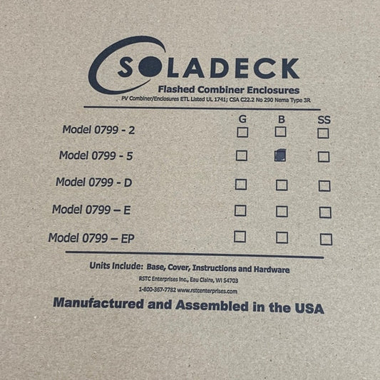 New Soladeck Flashed Solar PV Combiner Enclosure Model 799-D Black