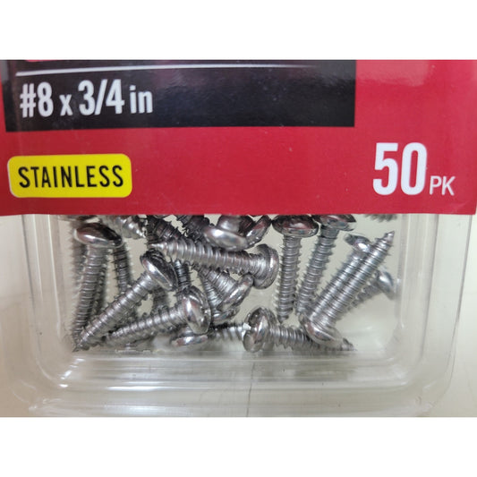 50 New Everbilt #8 Pan Head Phillips 3/4" Stainless Steel Sheet Metal Screws