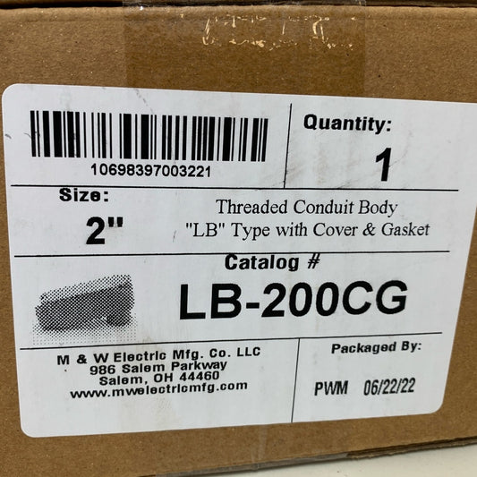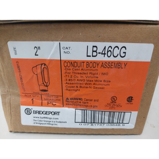 New Bridgeport LB-46CG 2" Die Cast Aluminum Conduit Body With Cover & Gasket