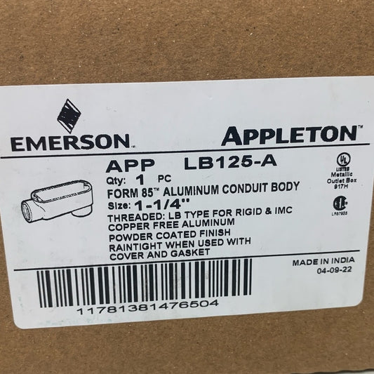 New Appleton Form 85 Aluminum Conduit Body Type LB125-A 1.25" Threaded For Rigid
