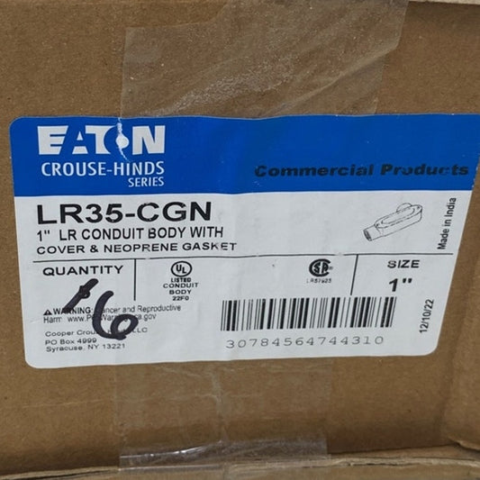 6 New Eaton LR35-CGN 1" LR Aluminum Conduit Body With Cover & Neoprene Gasket