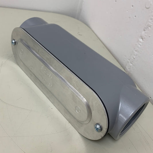 New Eaton E121488 1.25" Aluminum T Conduit Body With Cover & Gasket