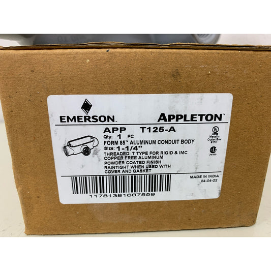 New In Box Emerson T125-A Form 85 1.25" Aluminum T Conduit Body