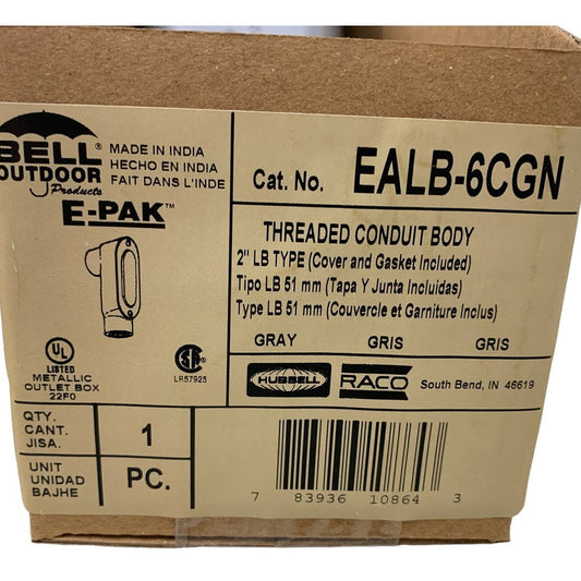New Hubbell Bell Outdoor EALB-6CGN 2" LB Type Threaded Conduit Body Cover Gasket
