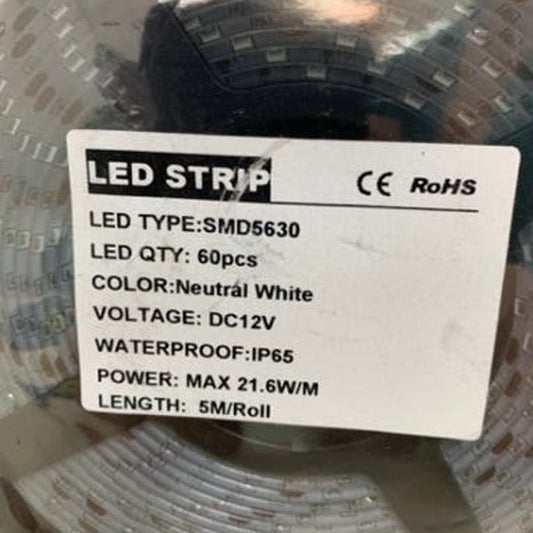 New RoHS LED Type SMD5630 Neutral White DC12V 5M Roll LED Strip