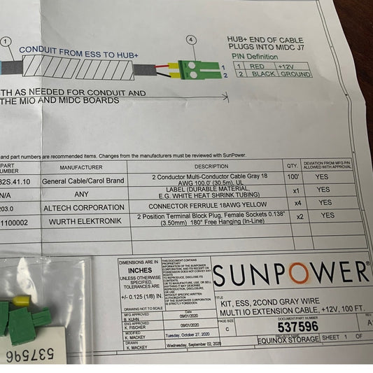 New Sunpower ESS 2 Conductor Multi IO 100' Extension 18 AWG Cable Kit 537596