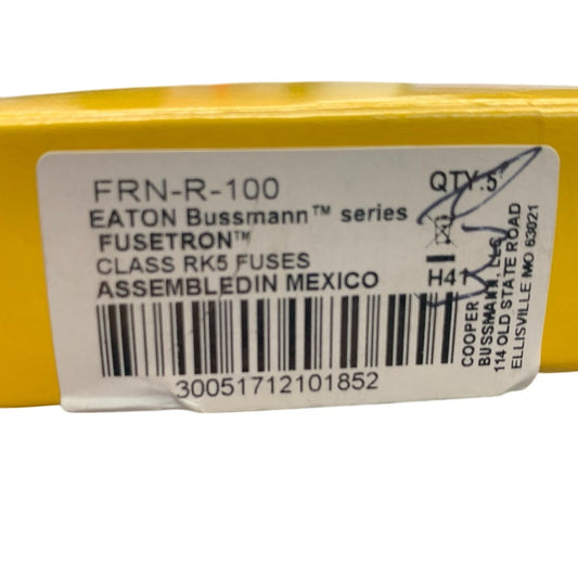 New Cooper Bussman Fusetron Energy Efficient 250Vac FRN-R-100 RK5 Fuse Open Box