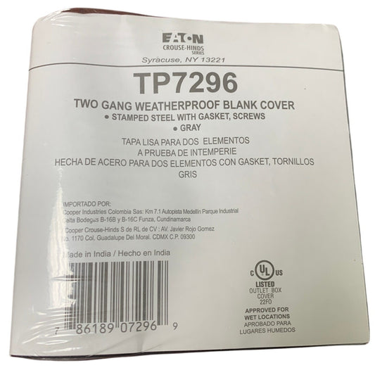 New Eaton TP7296 Two Gang Weatherproof Aluminum 4.5" Outlet Box Cover