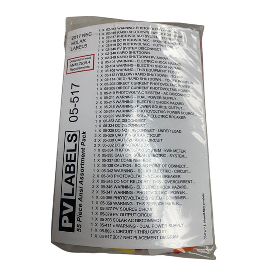 New In Package 55 Piece Ansi Assortment Pack 2017 NEC PV Solar Labels 05-5172weassd