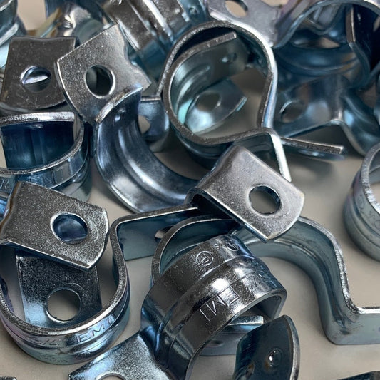 Box of 100 New Eaton 3/4" Metal Snap On Type Pipe Strap One Hole EMT Clamps
