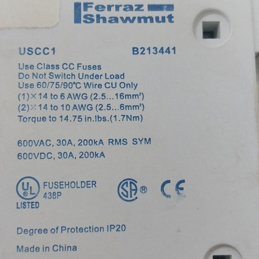 New Ferraz Shawmut UltraSafe 600V 30A USCC1 Fuse Holder B213441 - Open Box
