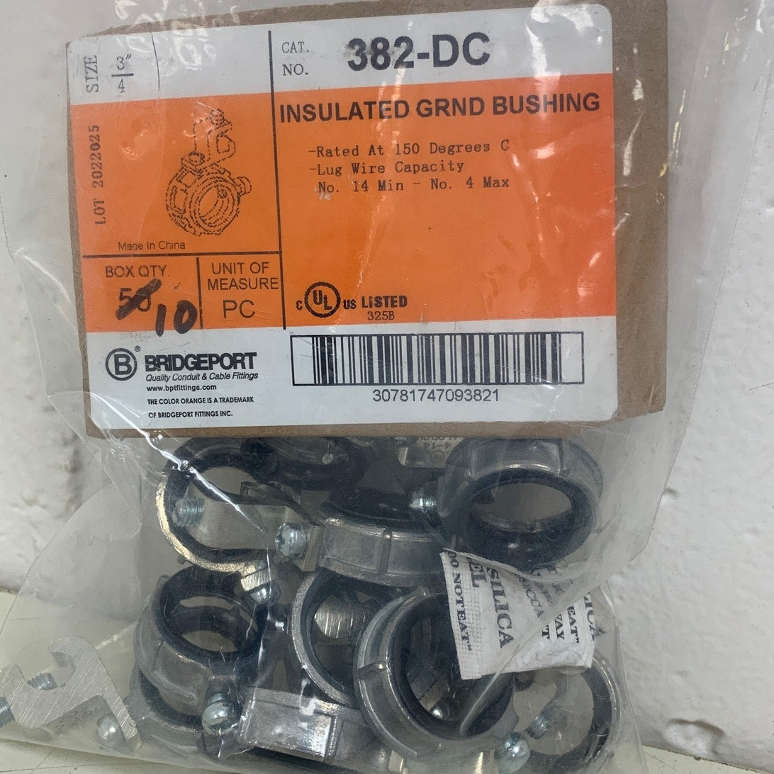 10 New Bridgeport 3/4" Insulated Ground Bushing 382-DC Connectors