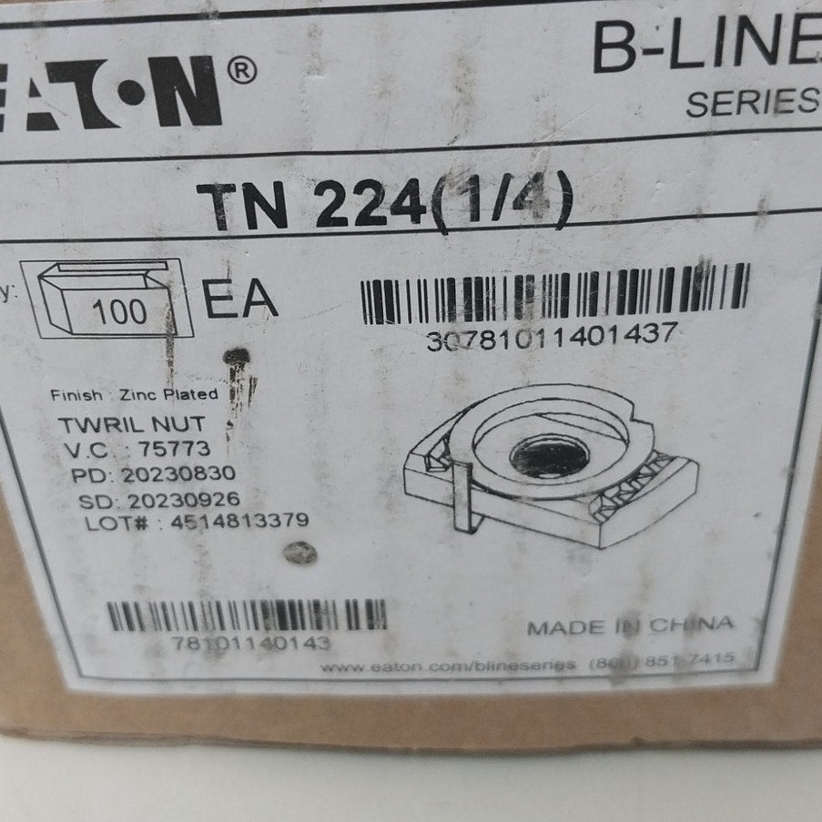 10 New Eaton TN224 ZN (1/4) Zinc Plated B-Line Series Twirl Nut