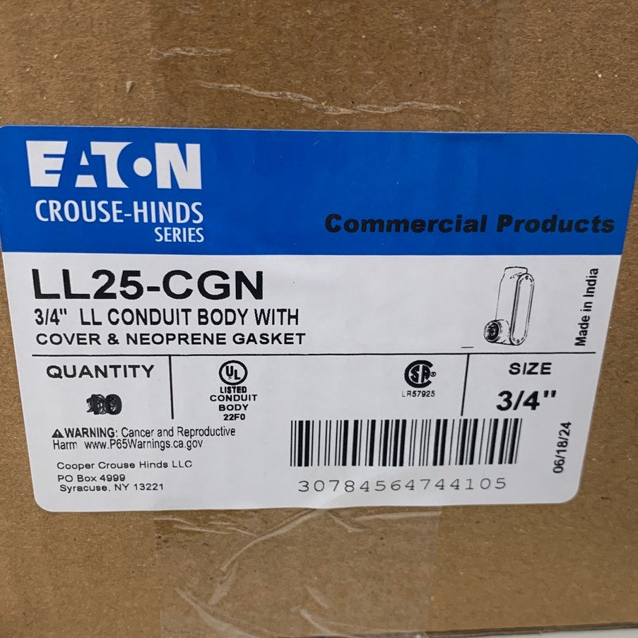 10 New In Box Eaton 3/4" LL25-CGN LL Conduit Bodies w Covers & Neoprene Gaskets