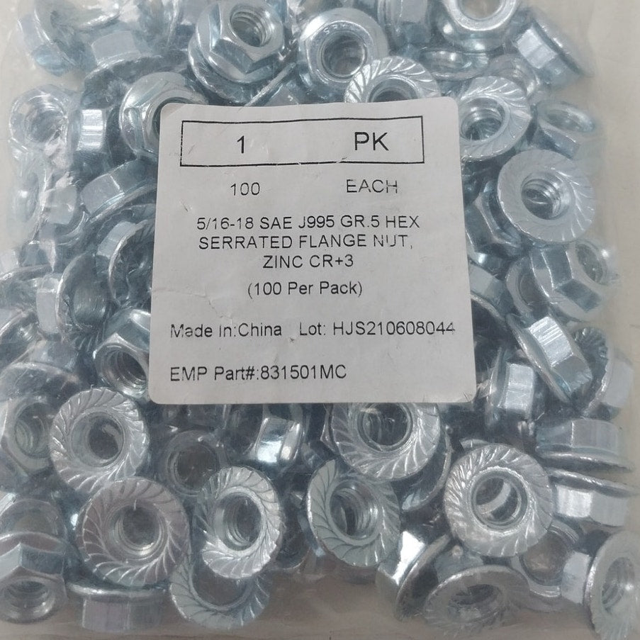 100 New 5/16-18 SAE J995 GR.5 Hex Serrated Flange Nuts Zinc CR+3