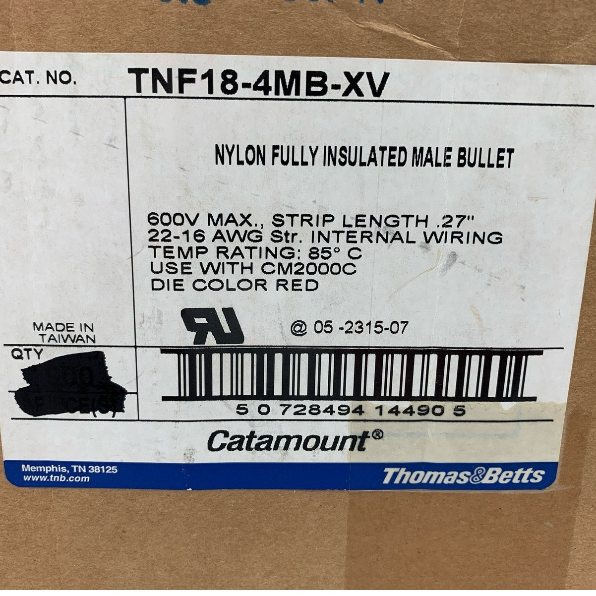 100 New Thomas Betts Red Nylon Male Wired Bullet Connectors TNF18-4MB-XV