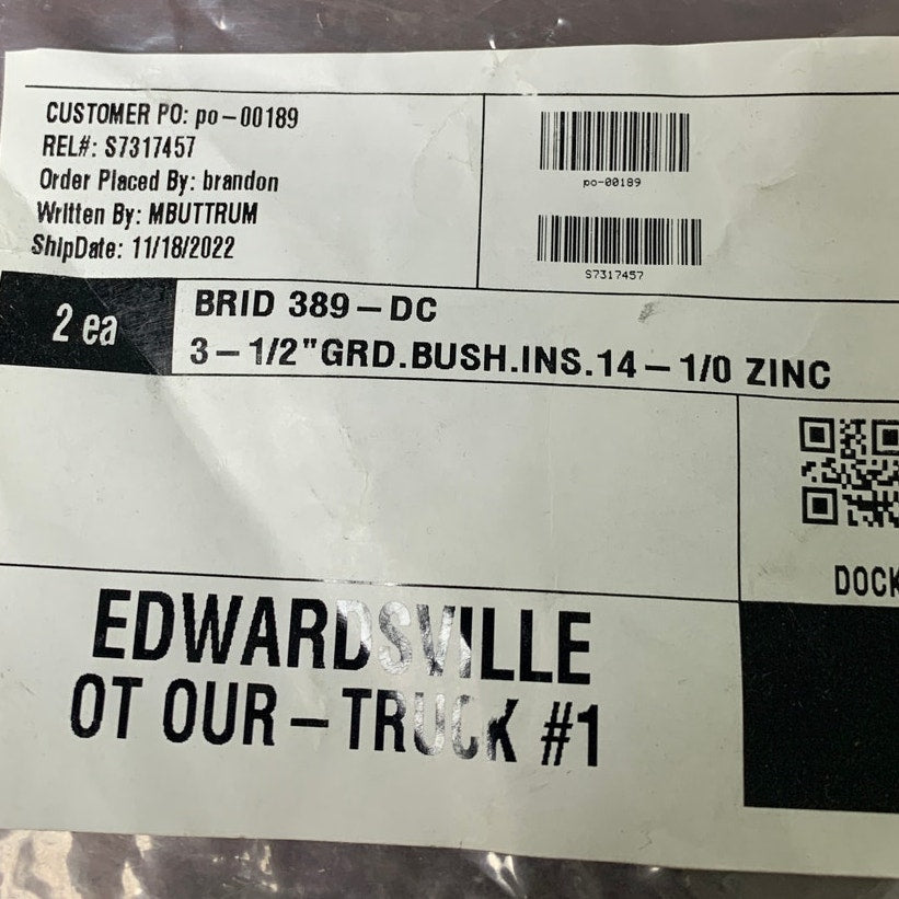 2 New Bridgeport 389-CD 3.5" Insulated Grounding Bushings 1/0 Zinc