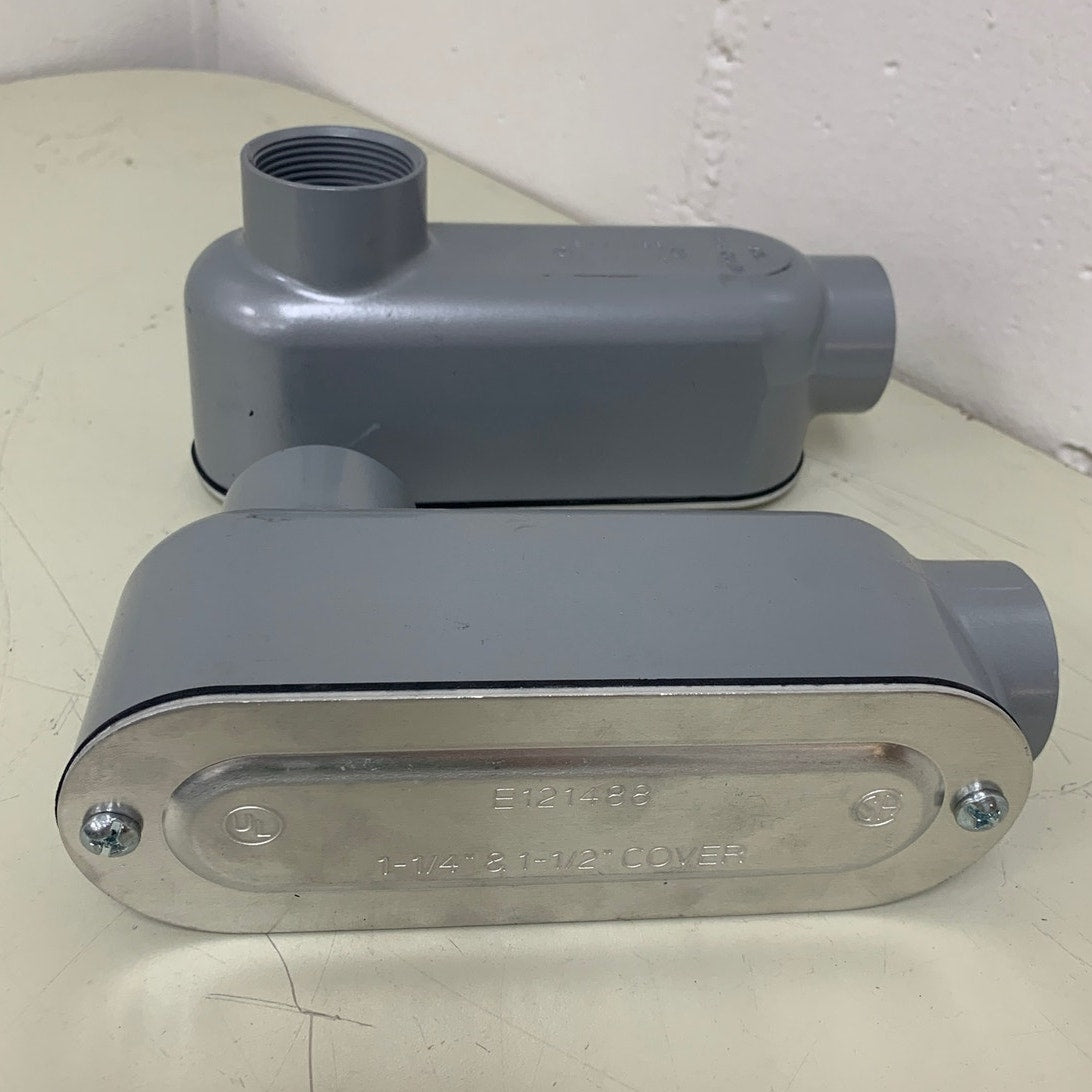 2 New Eaton LB45-CGN 1.25" Aluminum LB Conduit Body With Cover & Gasket