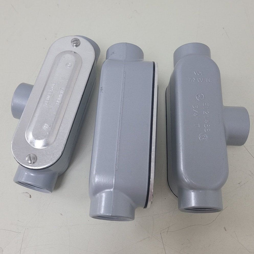 3 New Emerson Industrial 3/4" E121488 T-Type Aluminum Conduit Bodies W Covers