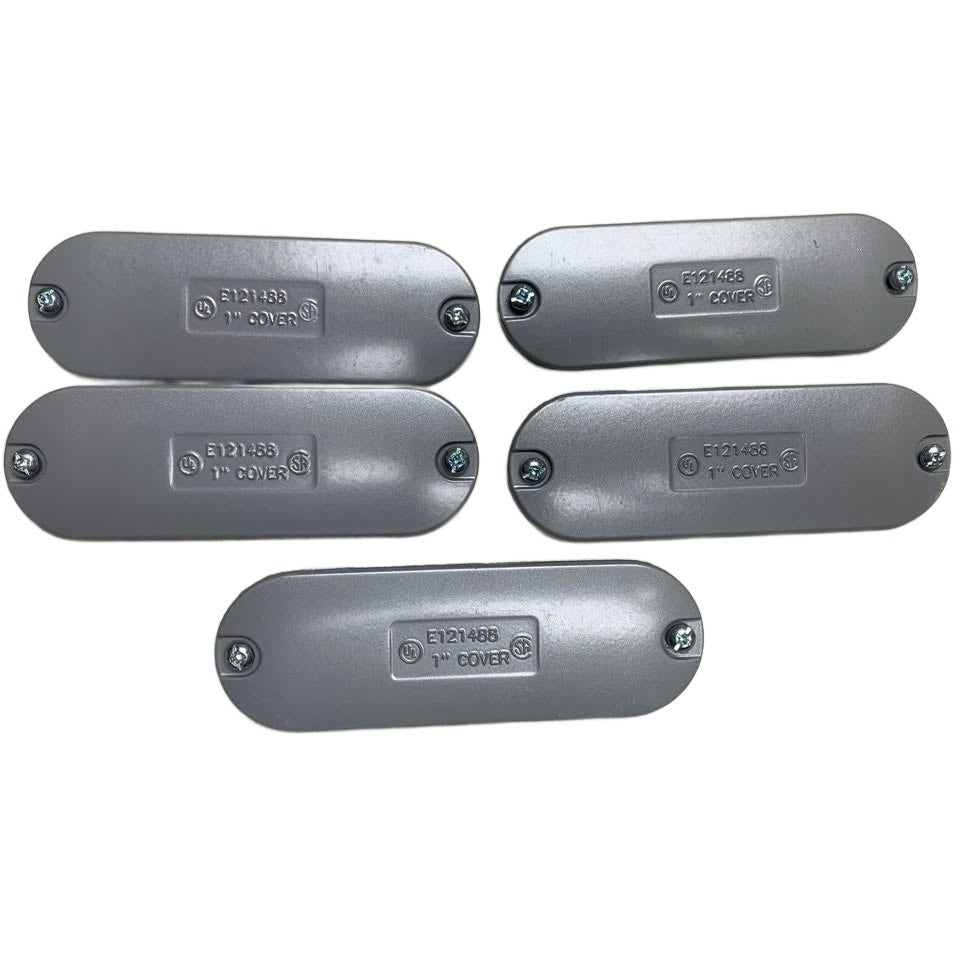 5 New Metal E121488 1" Conduit Covers w Pair of Screws Open Box