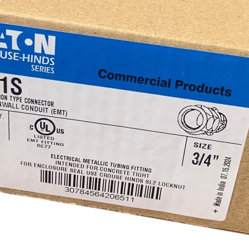 5 New Open Box Eaton 3/4" 651S Compression Connector EMT Concrete Tight Fittings