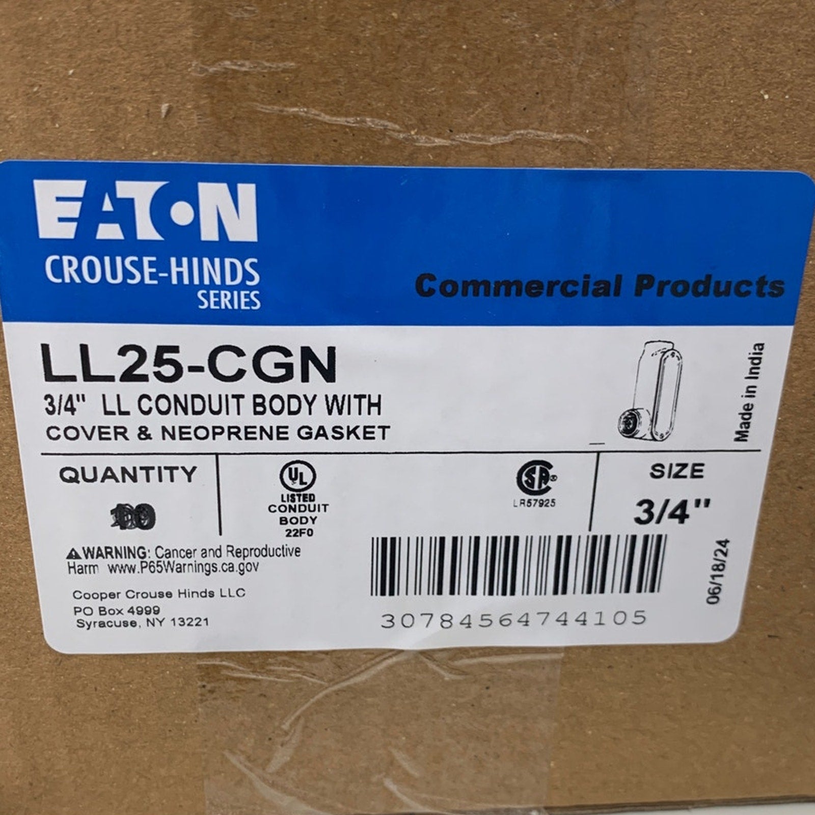5 New Open Box Eaton 3/4" LL25-CGN LL Conduit Bodies w Covers & Neoprene Gaskets