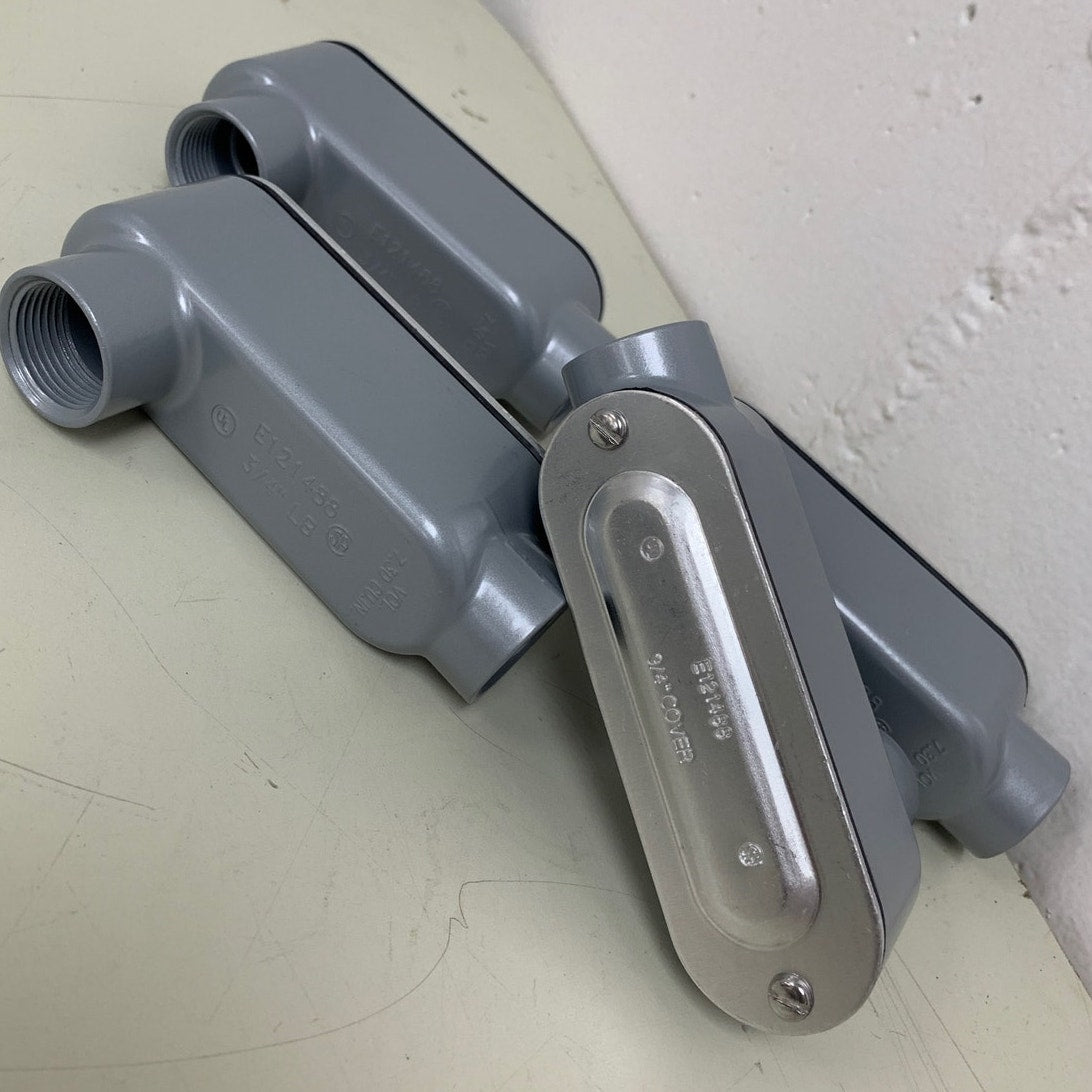 Lot of 4 New Aluminum Conduit Body Type LB 3/4" Threaded w Gasket & Covers