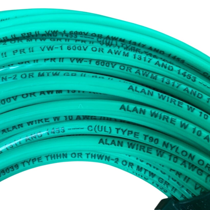 New 100’ Green 10 AWG THHN THWN Stranded Copper Alan Wire - Open Box