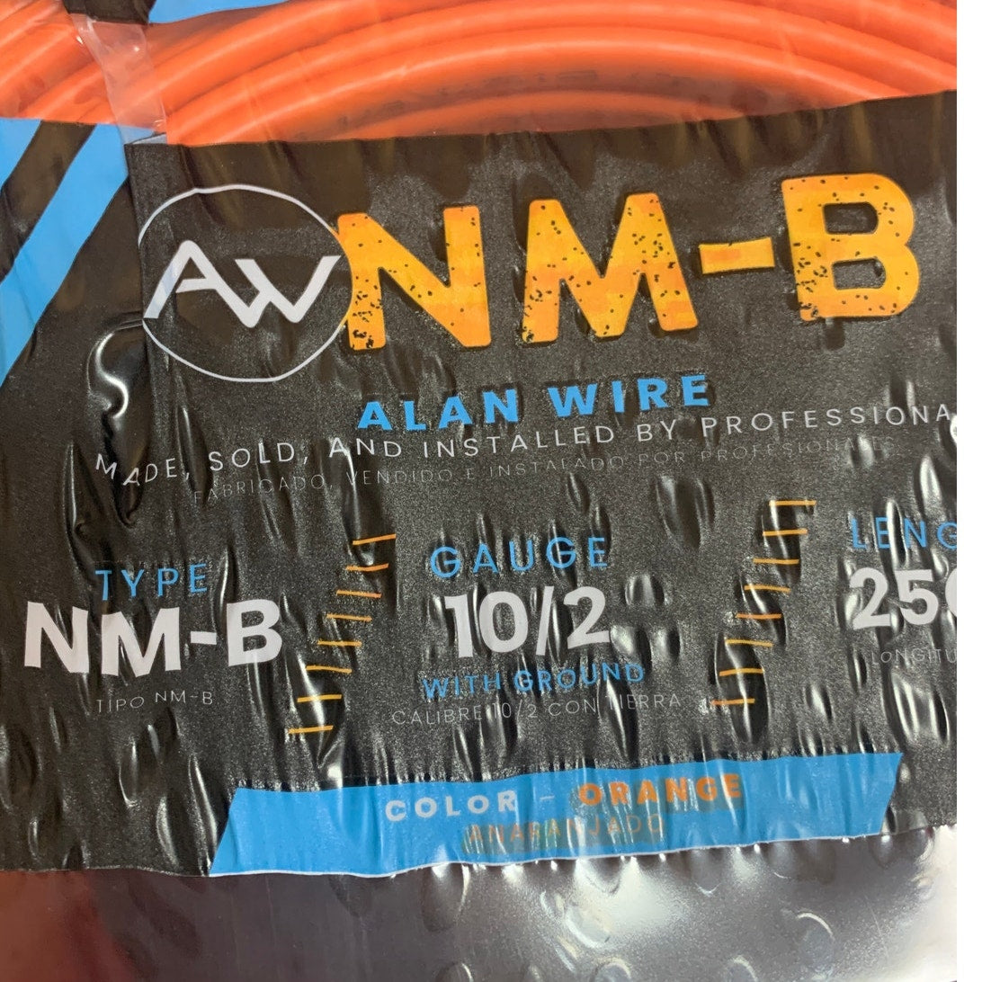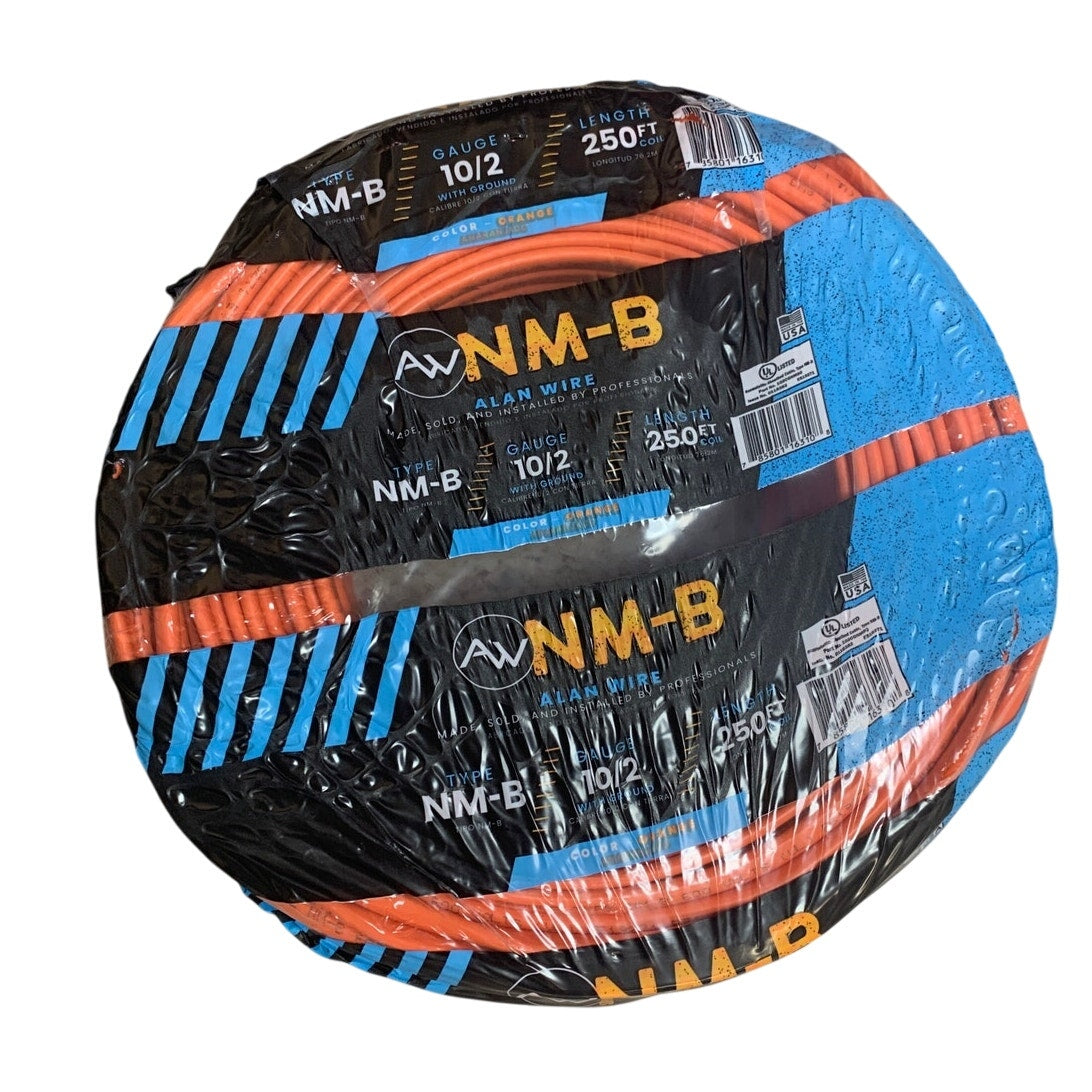 New 250ft Alan Wire NM-B Gauge 10/2 With Ground Orange Wire