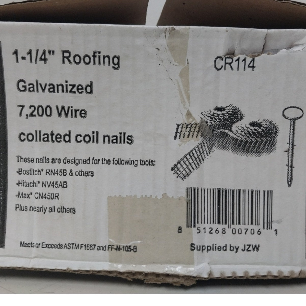 New ABC Supply Co Inc 1 1/4" Roofing Galvanized Wire Collated Coil Nails