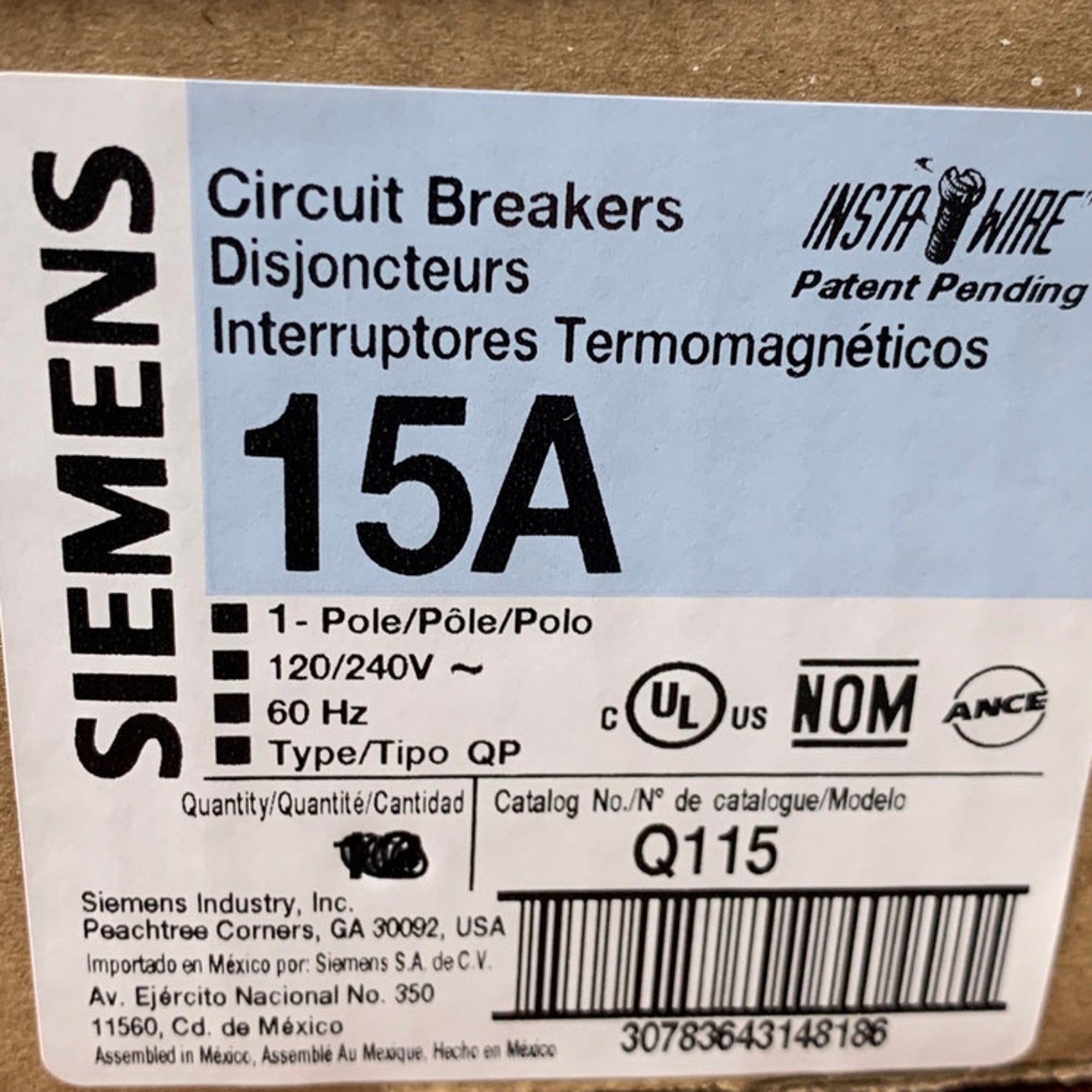 New Box of 12 Siemens Q120 15-Amp Single Pole Type QP Circuit Breakers