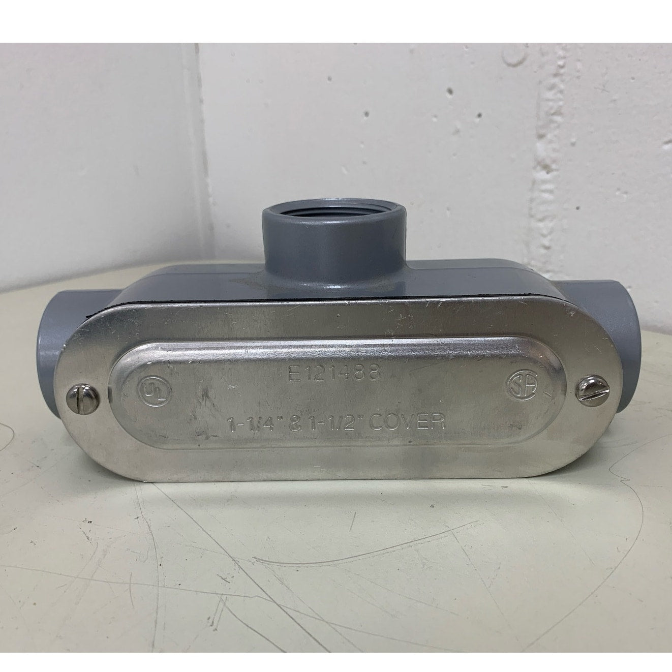 New Eaton E121488 1.25" Aluminum T Conduit Body With Cover & Gasket