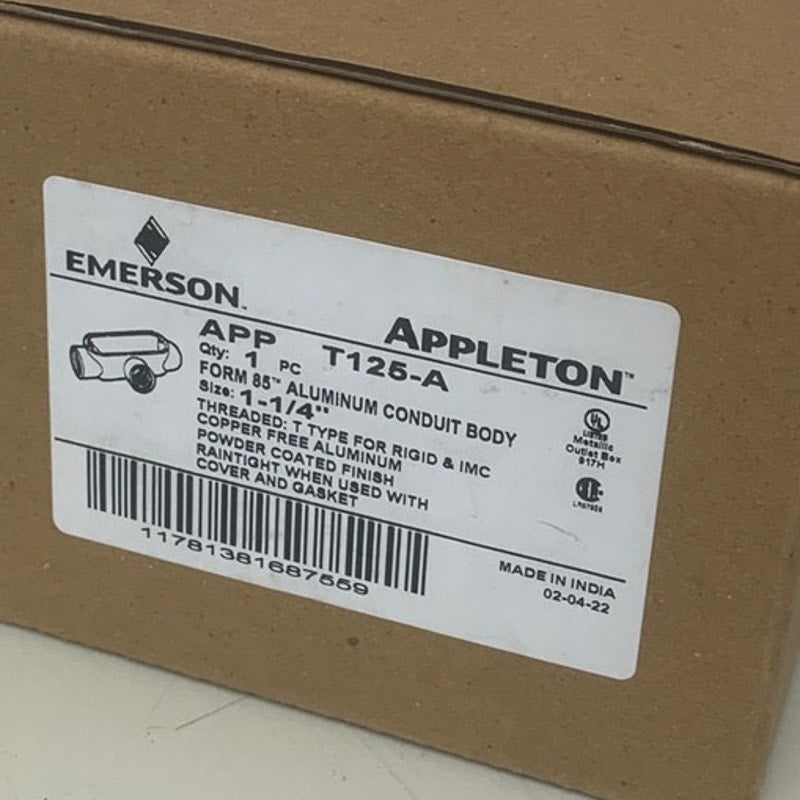 New Emerson Appleton Form 85 1.25" T Type Aluminum Electrical Conduit Body