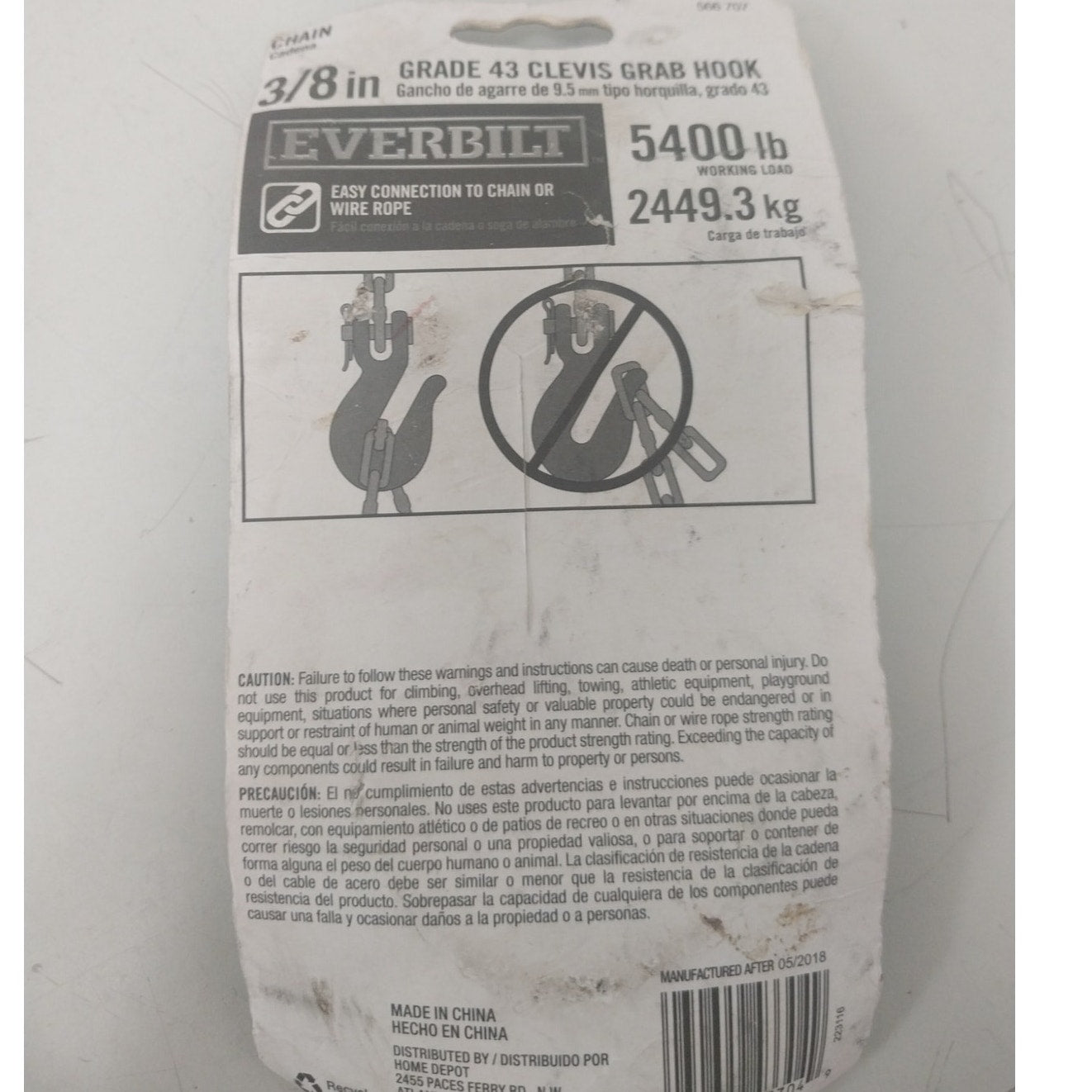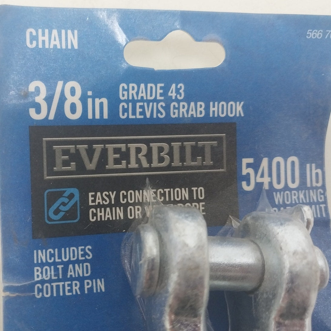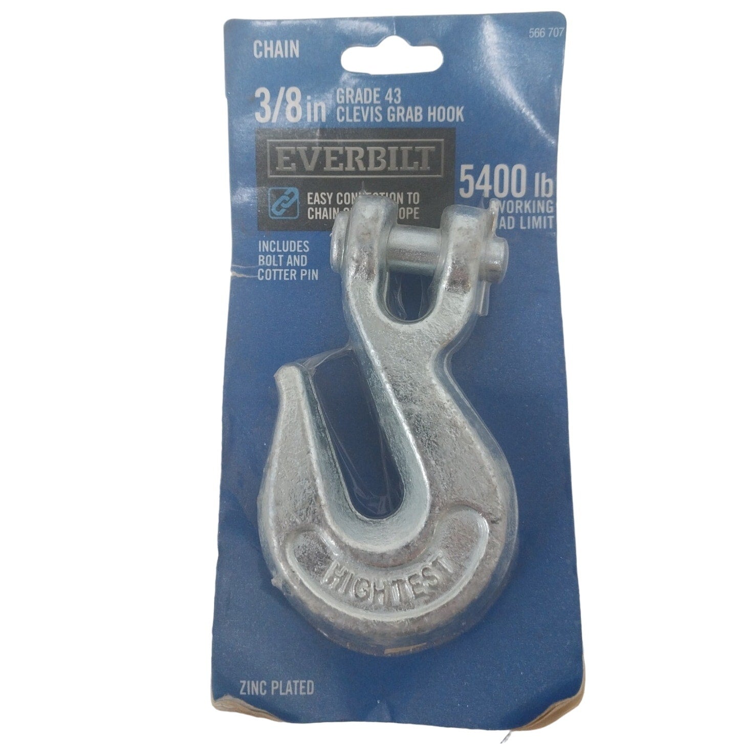 New Everbuilt 3/8" Grade 43 Zinc Plated Clevis Grab Hook Bolt and Cotter Pin