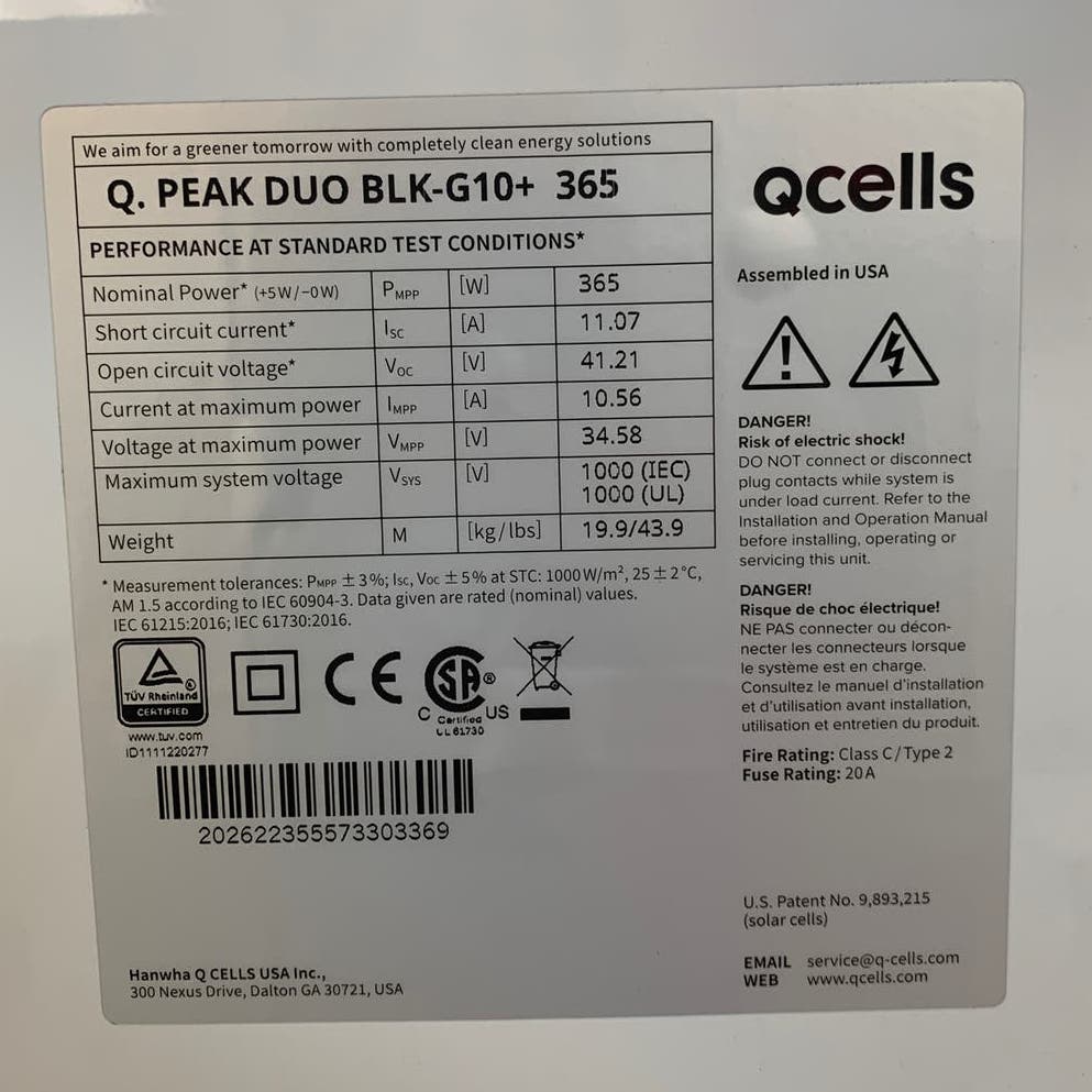 New Hanwha Q CELLS Q.PEAK-DUO BLK-G10+ 365W Silver Frame Solar Panel