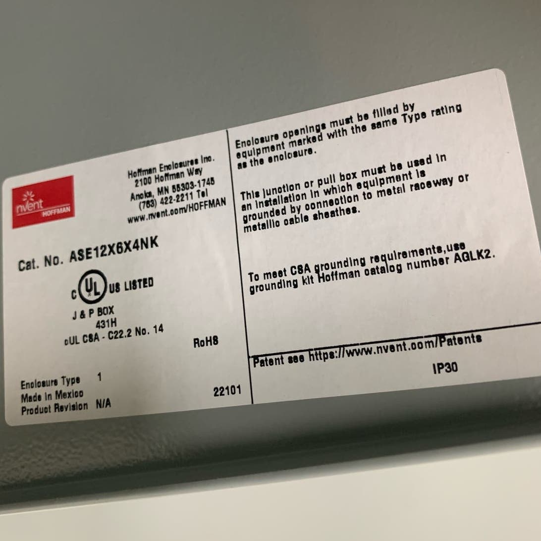 New Hoffman NVent ASE12X6X4NK Metal Junction & Pull Box Enclosure Type 1