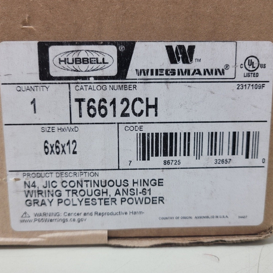 New Hubbell 6" by 6" by 12" T6612CH N4 Continuous Hinge Wiring Trough