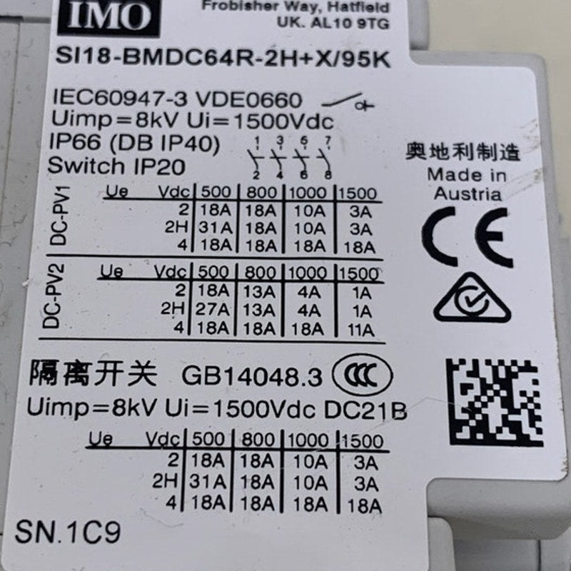 New IMO SI18-BMDC64R-2+X/95K Isolation PV Manual Disconnect IP20 Switch