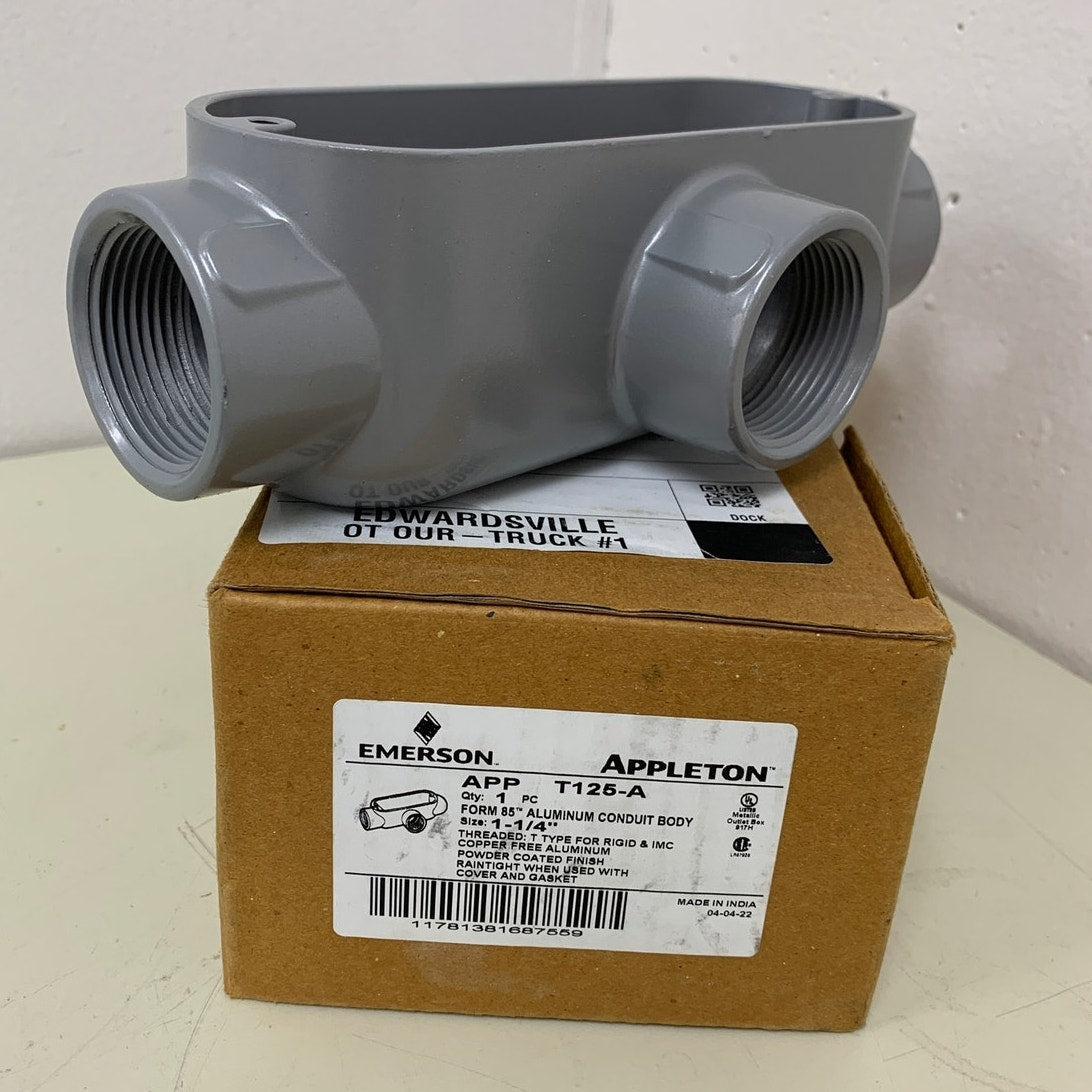 New In Box Emerson T125-A Form 85 1.25" Aluminum T Conduit Body