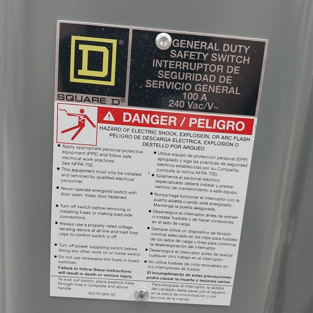 New In Box Square D 100A General Duty Safety Switch GDSS Metal Electrical Box