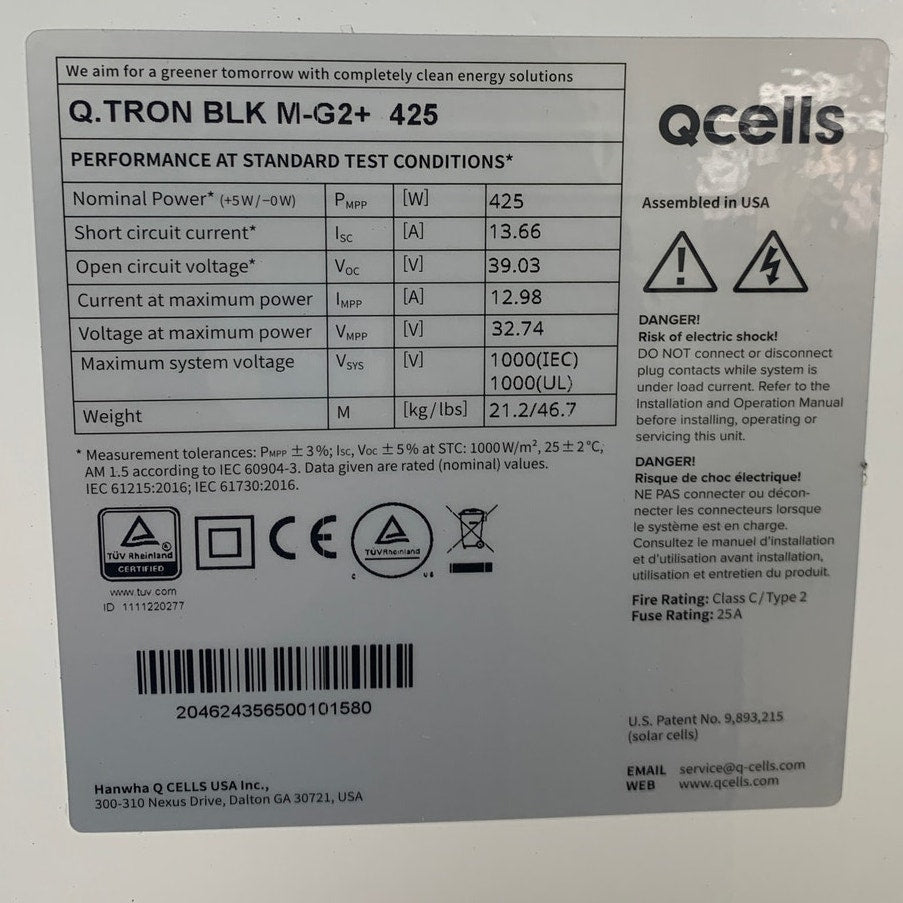New LG Q Tron BLK M-G2+ 425W 108 Half Cut Q.Antum NEO Cells Solar Panel Module