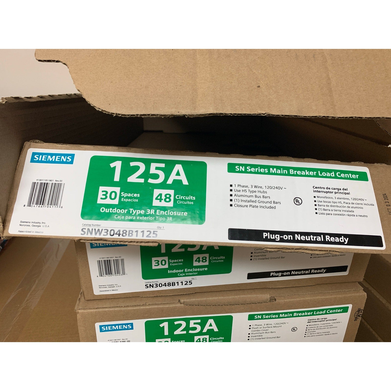 New Siemens 125A 30 Space 48 Circuit Main Breaker Outdoor 3R Electric Load Panel
