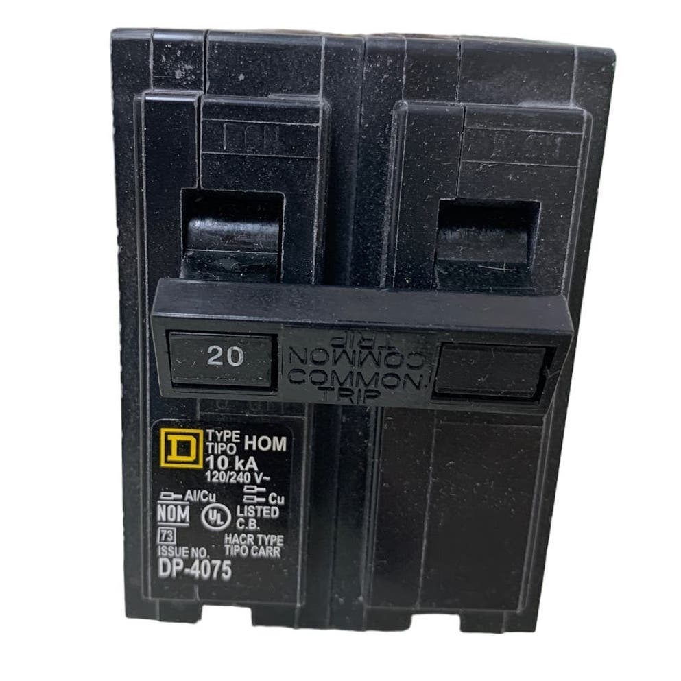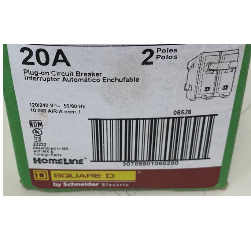 New Square D Home Line HOM220 20A Plug-On 2 Poles Circuit Plug-In Breaker