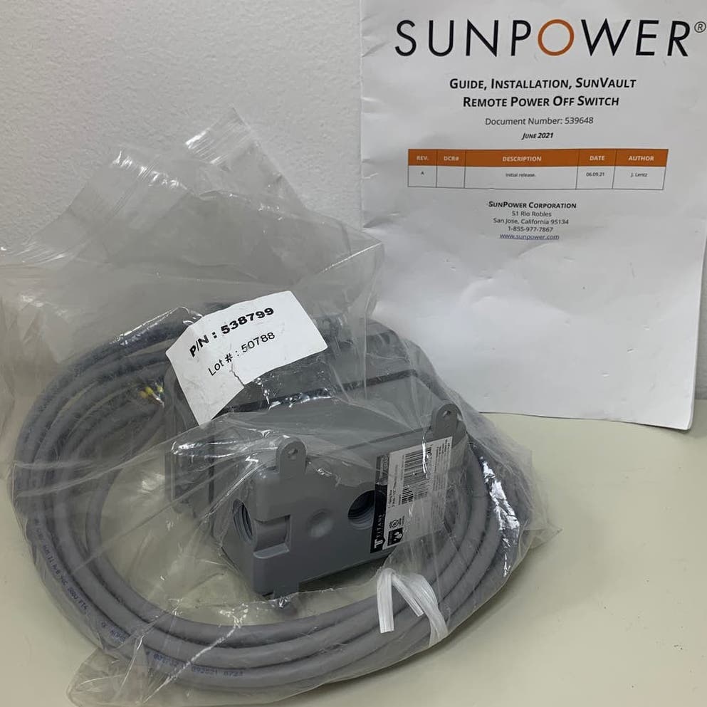 New Sunpower SunVault Remote Power Off RPO Switch 538799 Kit with Manual