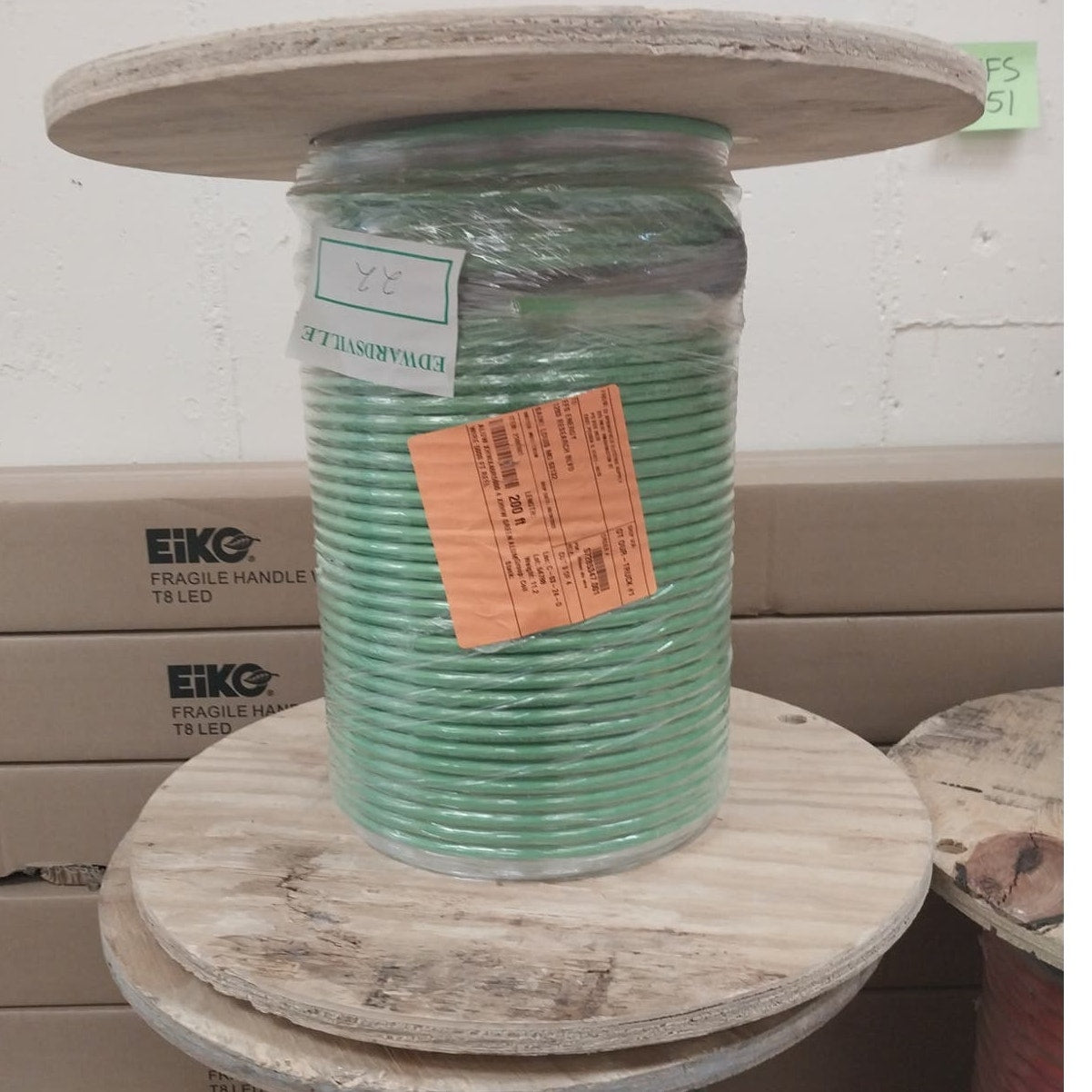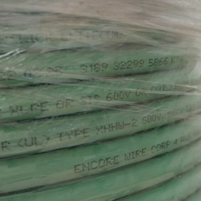 New Wooden Spool of 200 Feet Green 3/0 AWG Aluminum Electrical Wire
