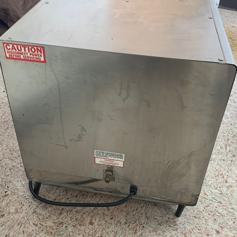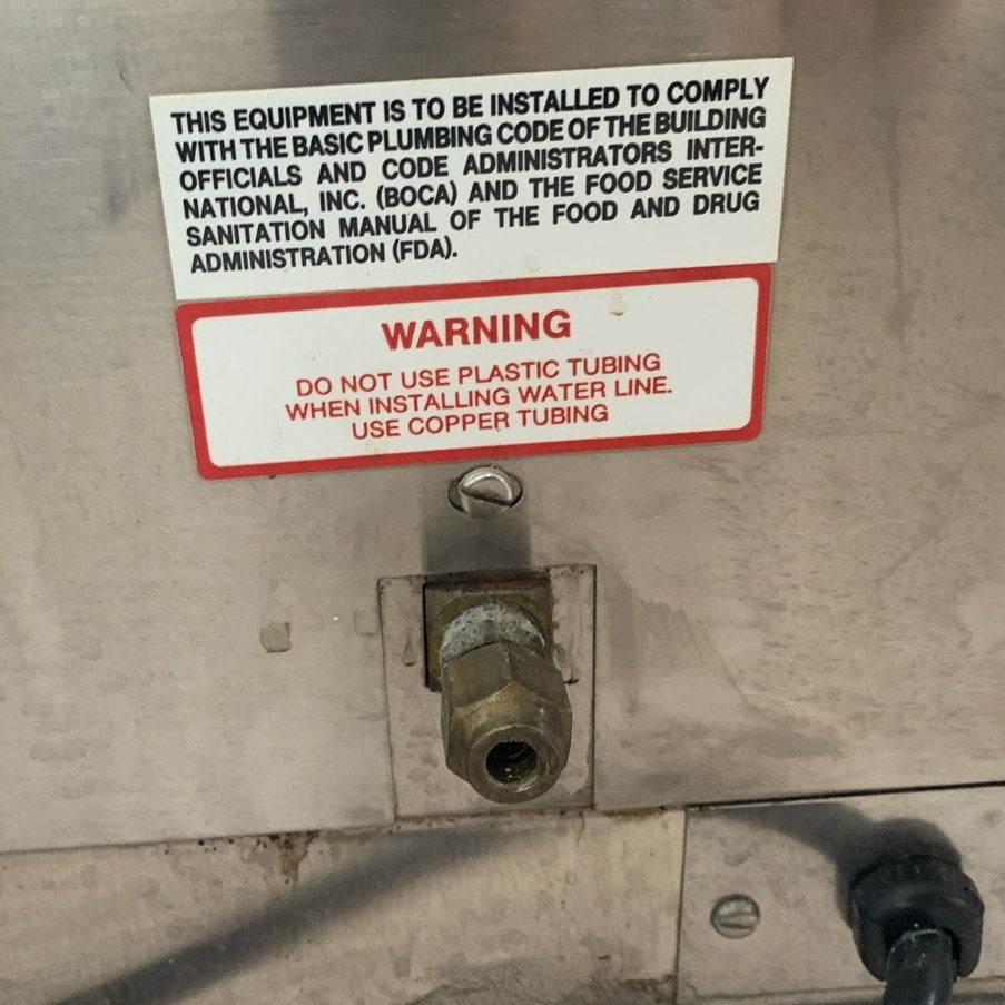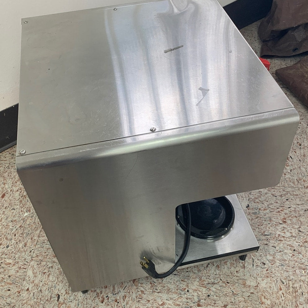 This coffee maker is in very good condition, measures 19" x 18" x 21" and includes one glass coffee pot and one metal filter holder. Copper tubing needed to run this machine and hookup to your water source (not included).