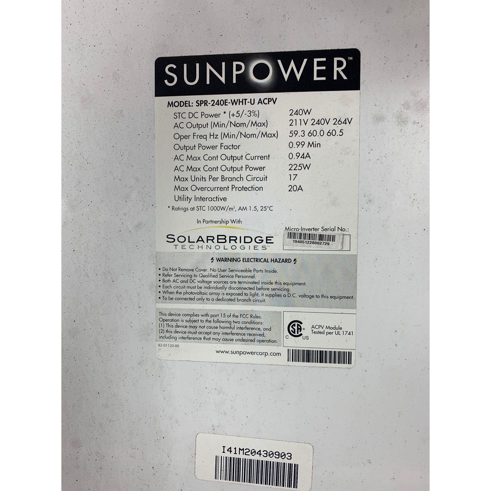 Used Sunpower SPR-225E-WHT-U-ACPV 240W White Squares Solar Panel Module